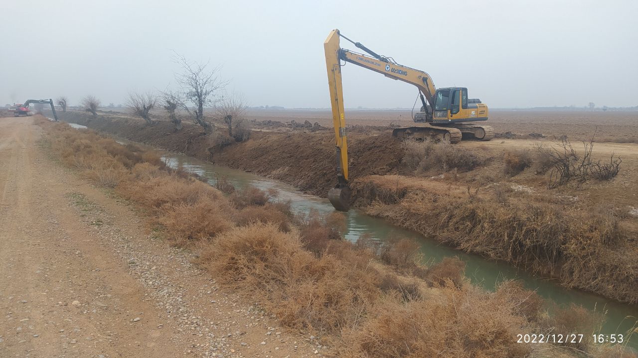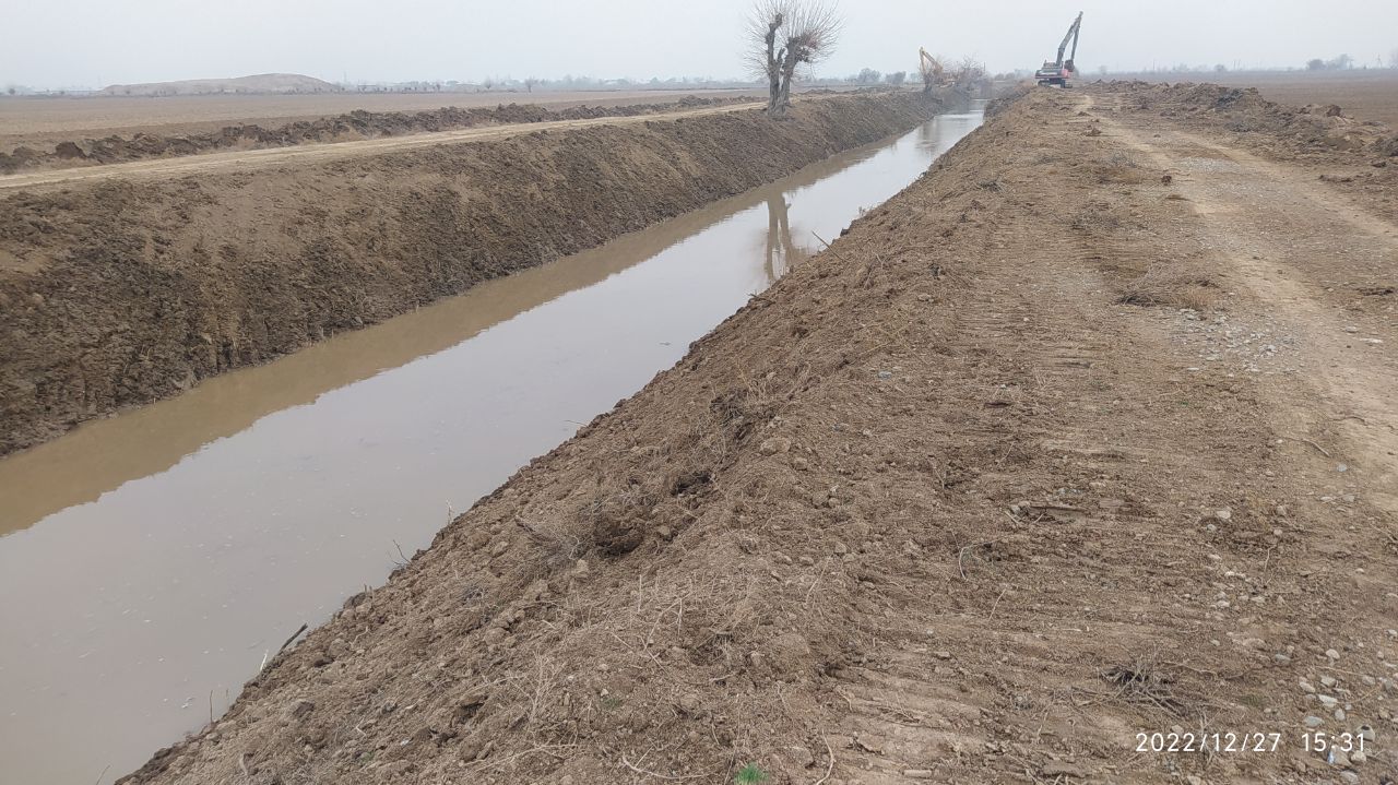 Косон туман ирригация бўлими томонидан Ўзбекистон Республикаси Вазирлар Махкамасининг 243-сонли қарори ижросининг бажарилиши бўйича Р-21 каналида олиб борилаётган ишлар.
